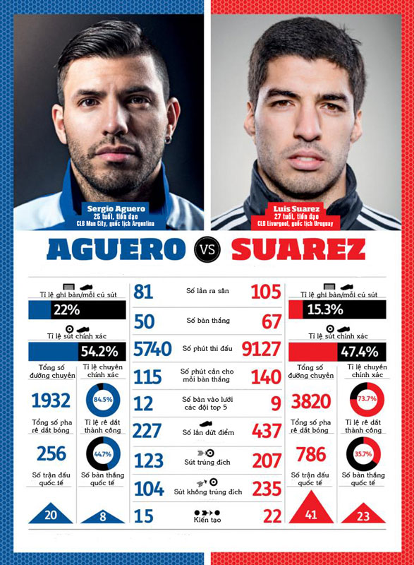 [Thể thao -Báo Bóng Đá] - Infographic: Aguero và Suarez, ai hay hơn?